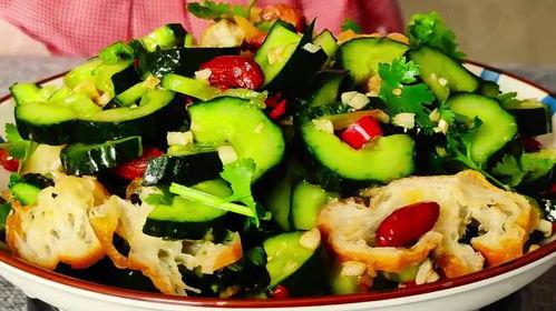 3. 黄瓜:将黄瓜切成薄片,加入蒜末、醋和辣椒,搅拌均匀,加入少许盐和糖,口感更鲜美。